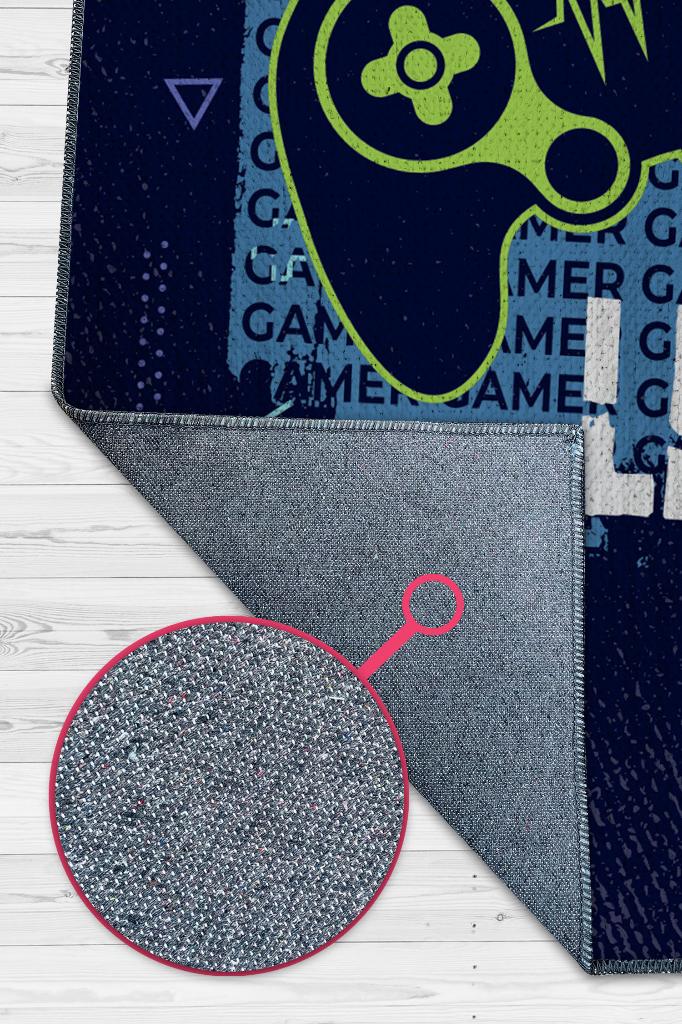 Homshtag Next Level Lacivert Oyuncu Halısı Gamer Özel Tasarım Halı Oyuncuya Hediye Çok Renkli Halı