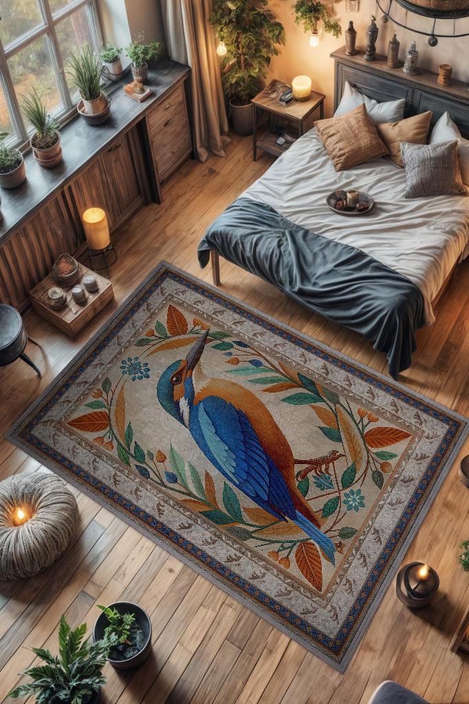 Homshtag Nuh'un Gemisi Koleksiyonu Yalıçapkını Temalı Çiçek Desenli Vintage Çok Renkli Konsept Halı