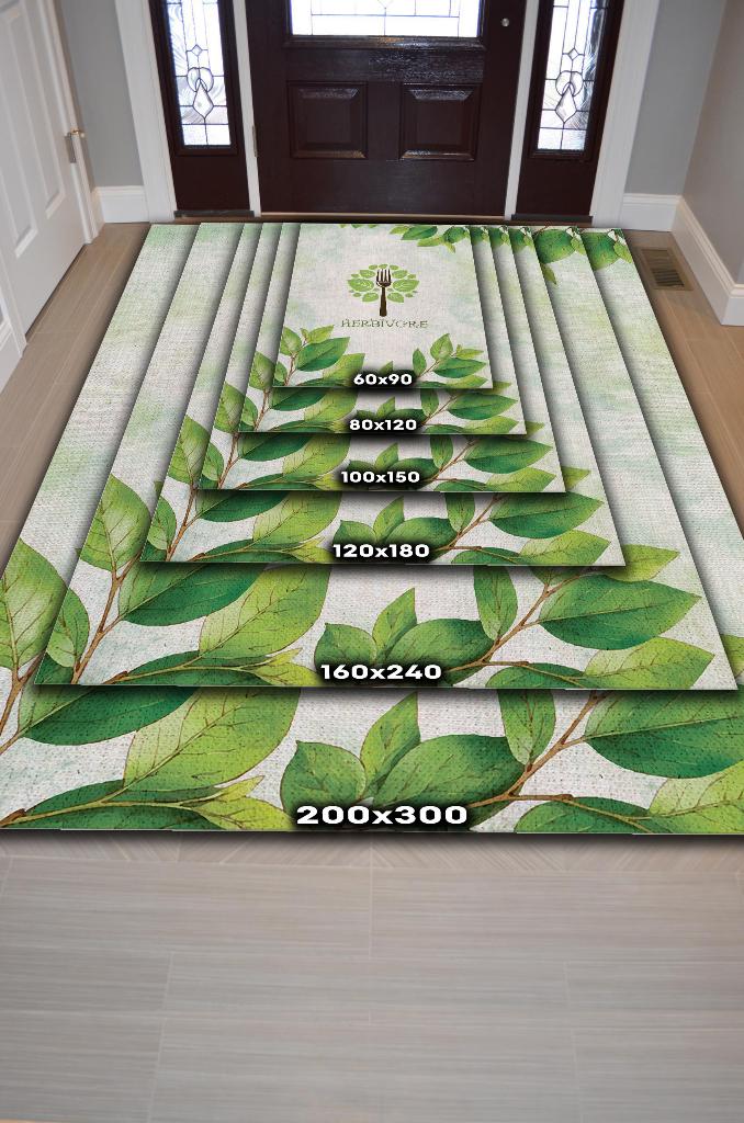 Homshtag Otçul Açık Renkli Vegan Halısı Yazılı Dijital Baskı Halı Yeşil Vegan Mutfak Halısı