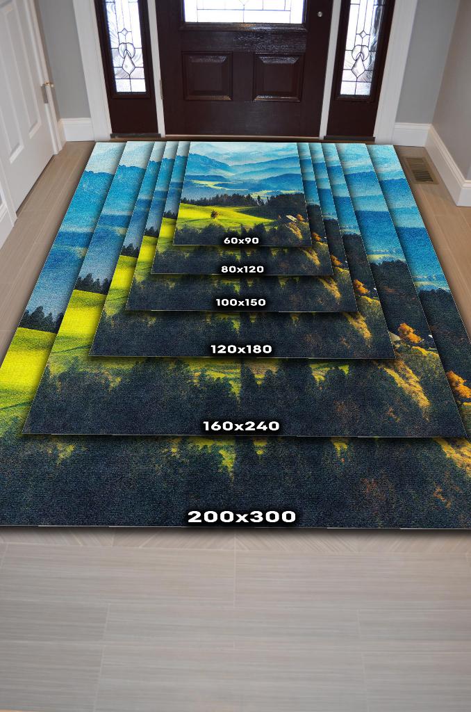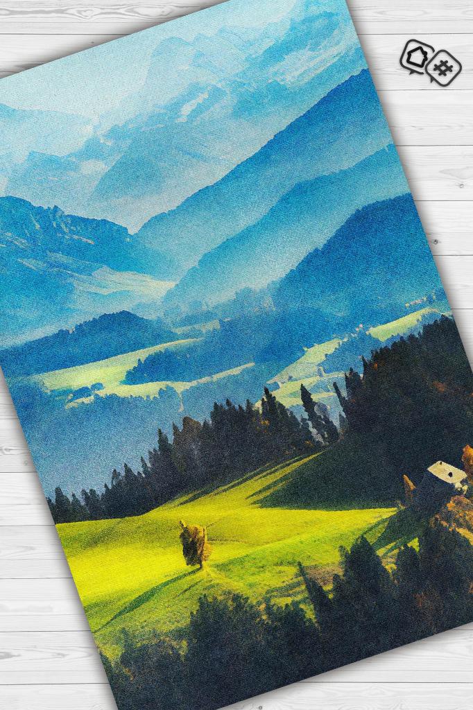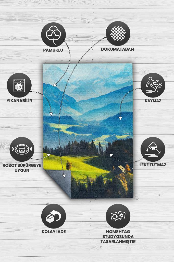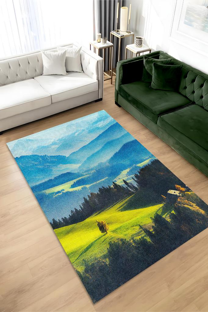 Homshtag Ova Çok Renkli Halı Manzara Temalı Figürlü Salon Halısı Dijital Baskılı Tasarım Halı