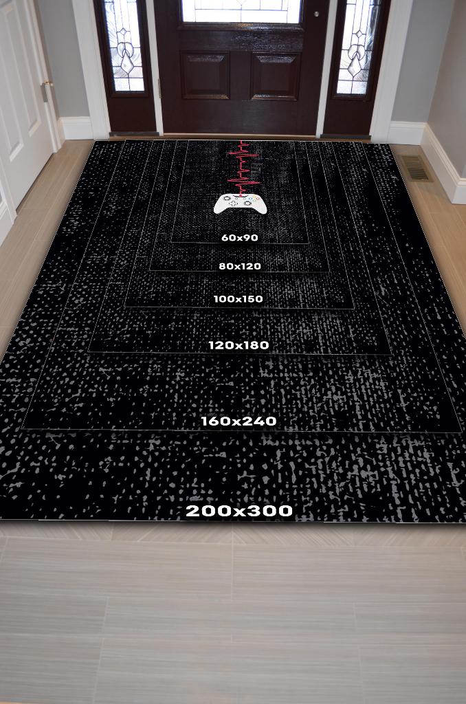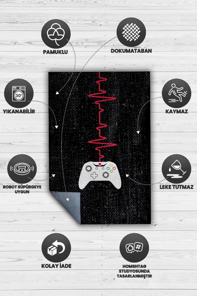 Homshtag Oyun Ritmi Siyah Oyuncu Halısı Gamer Tasarım Halı Oyuncuya Hediye Halı Konsol Temalı Halı
