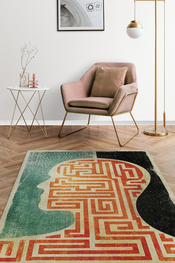 Homshtag Psikolog Yolu Gösterir Pamuklu Dokuma Tabanlı Yıkanabilir Kaymaz Dekoratif Halı