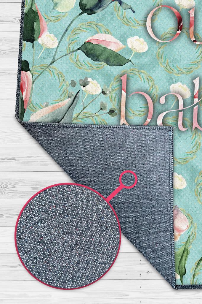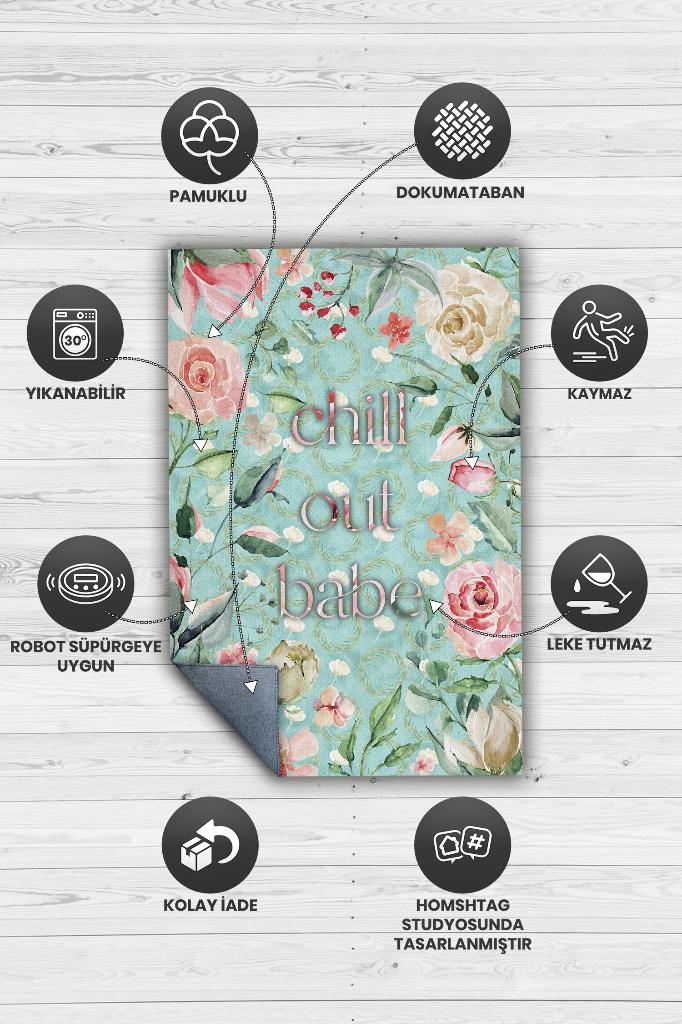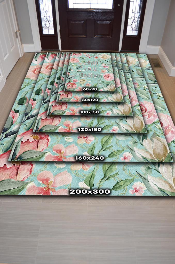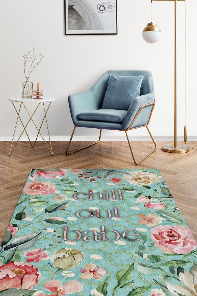 Homshtag Rahatla Bebeğim Yeşil Renkli Halı Çiçek Desenli Salon Halısı Çok Renkli Mutfak Halısı