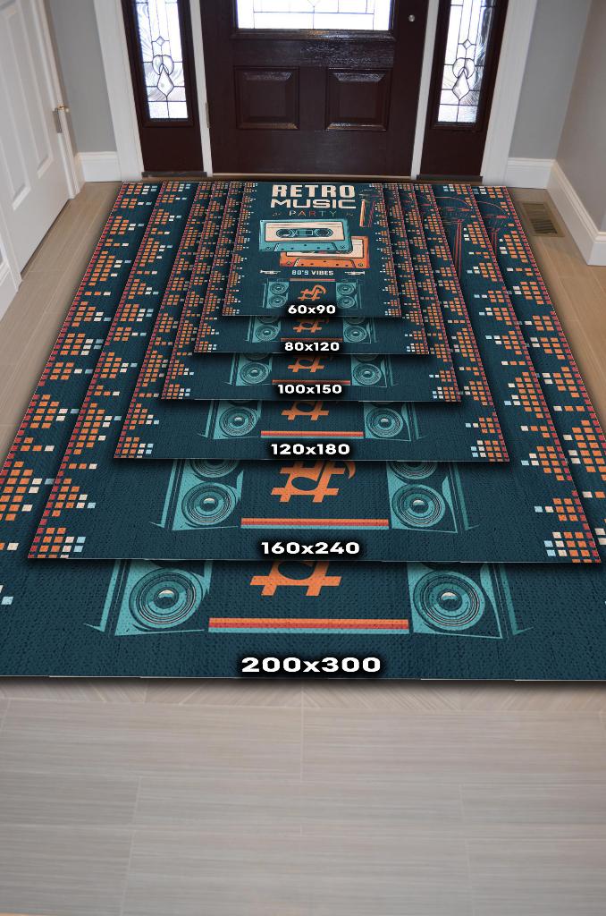 Homshtag Retro Müzik Çok Renkli Müzik Sever Halısı Müzisyene Hediye Halı Müzik Figürlü Halı