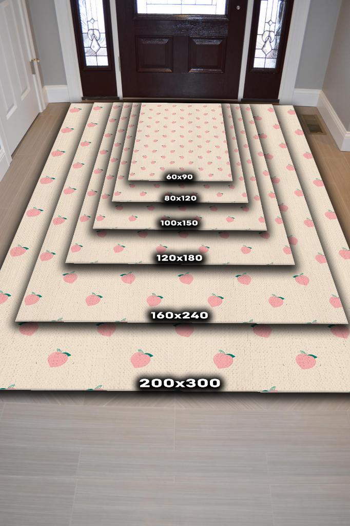 Homshtag Şeftali Desenli Turuncu Halı Minimal Salon Halısı Renkli Mutfak Halı Tarz Oturma Odası Halı