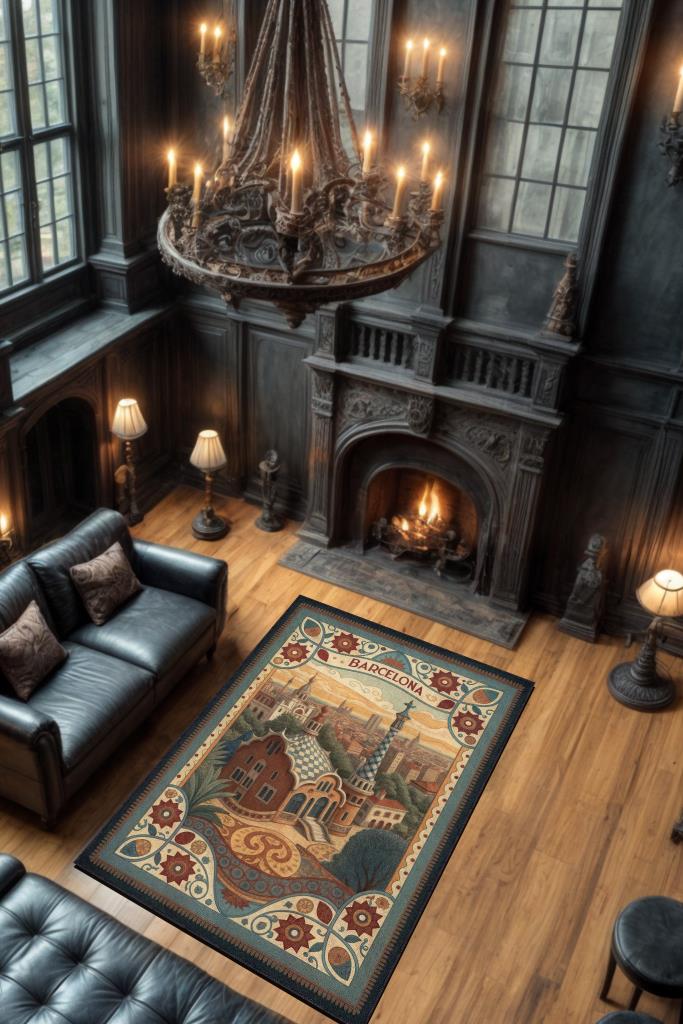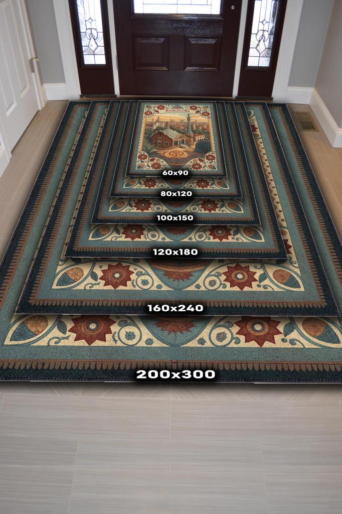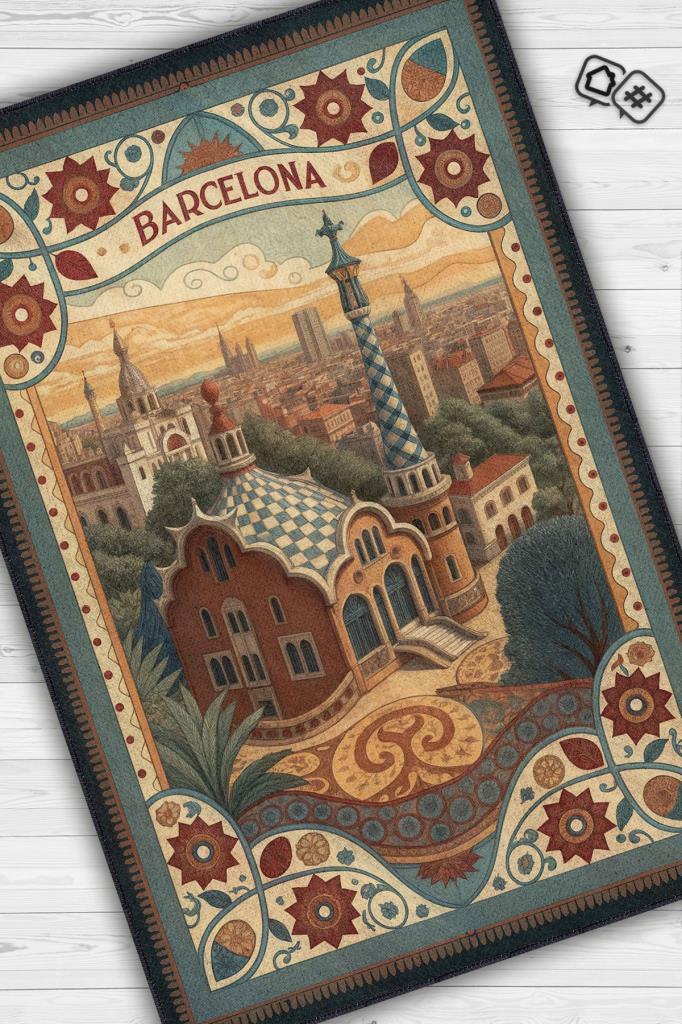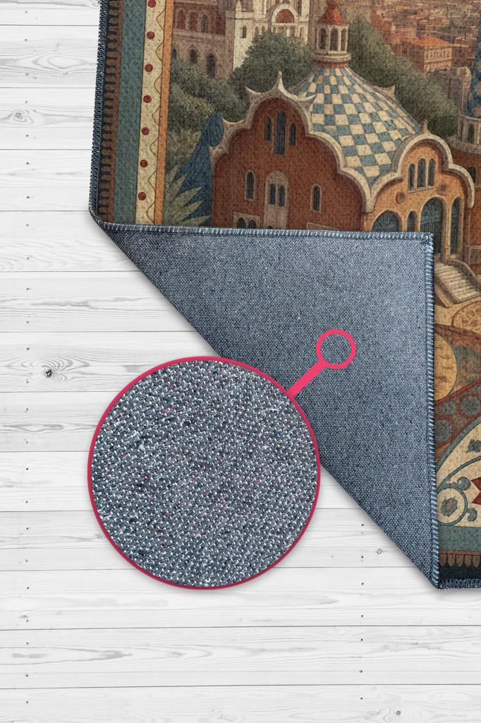 Homshtag Şehirlerde Barselona Temalı Dijital Baskılı Yıkanabilir Pamuk Tabanlı Barsolena Temalı Halı