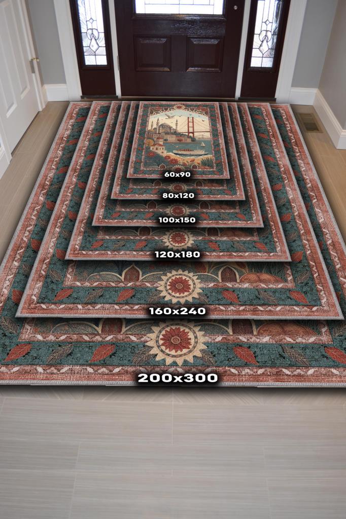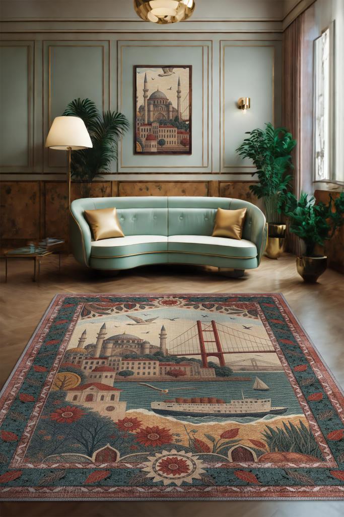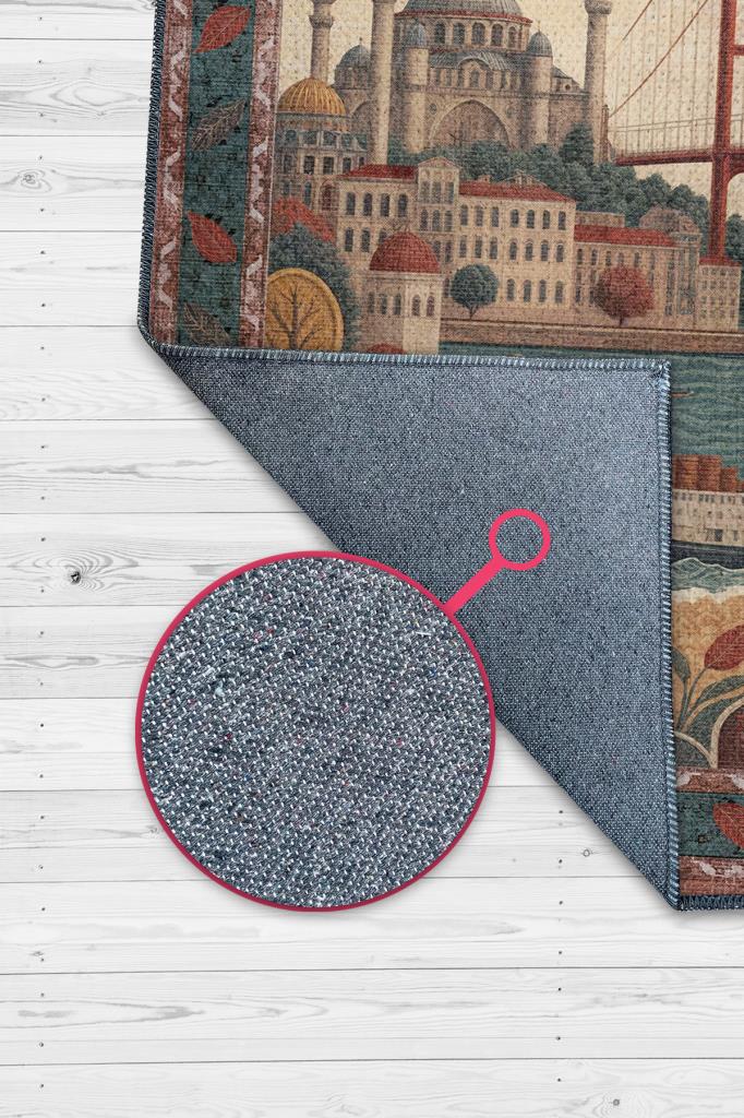 Homshtag Şehirlerde İstanbul Temalı Dijital Baskılı Yıkanabilir Pamuk Tabanlı Şehir Temalı Halı