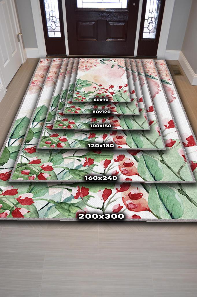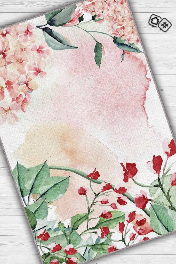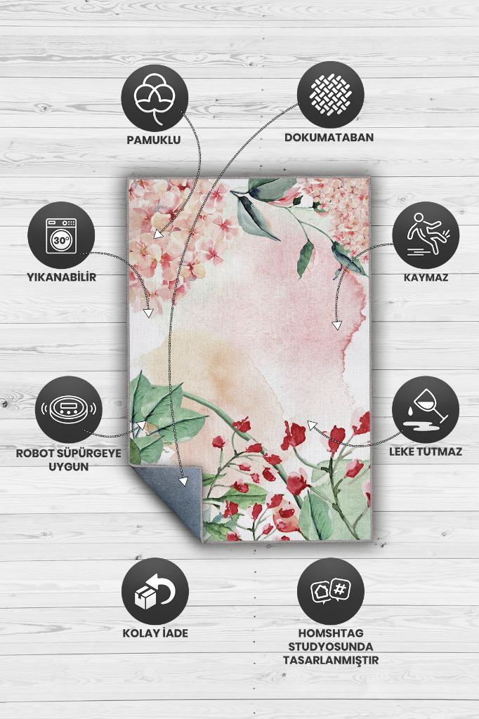 Homshtag Sen ve Ben Pembe Renkli Halı Çiçek Desenli Salon Halısı Çok Renkli Mutfak Halısı