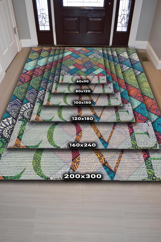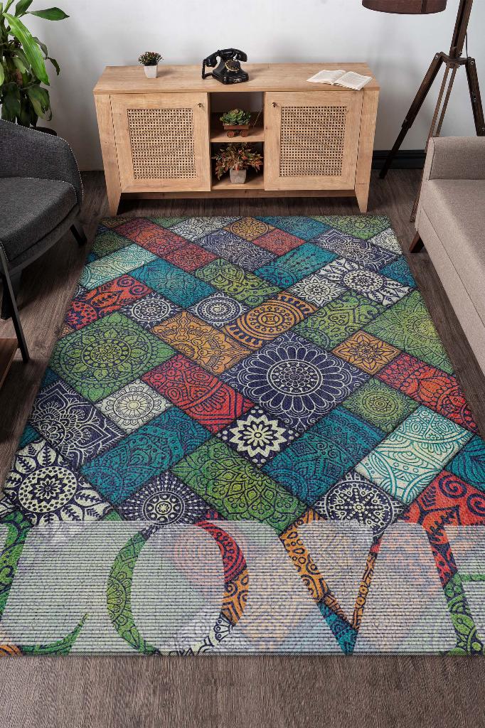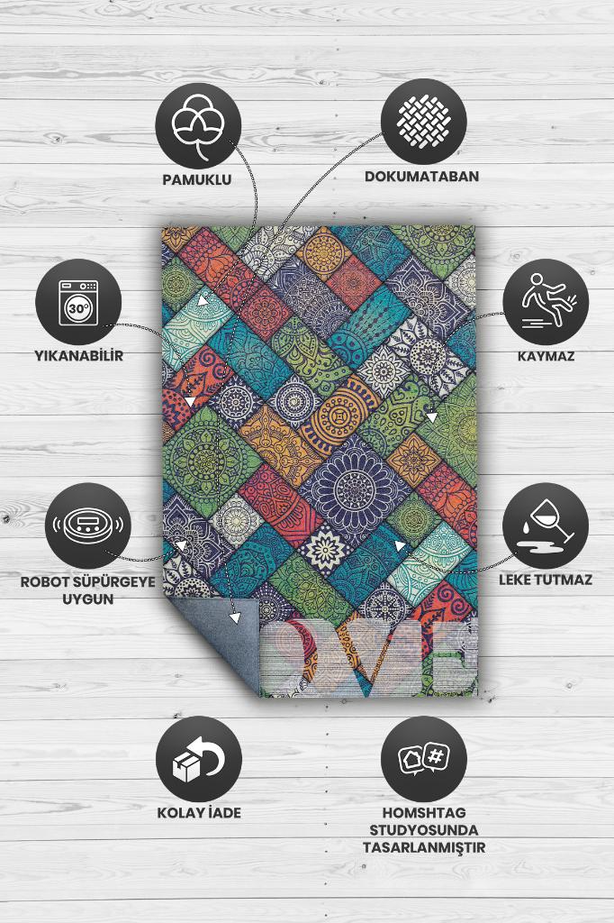 Homshtag Sevgi Gereken Yer Etnik Desenli Salon Halısı Modern Oturma Odası Halısı Çok Renkli Halı