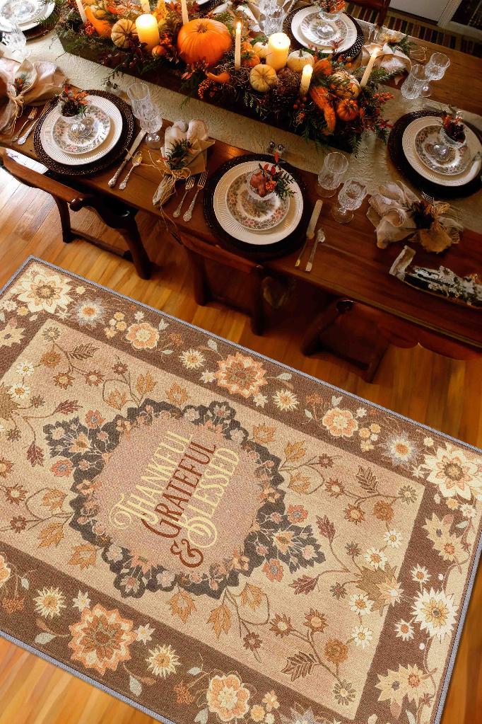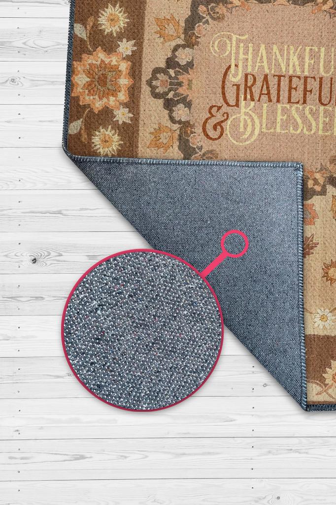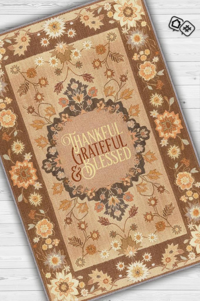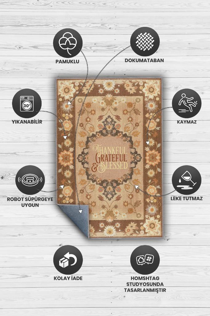 Homshtag Şükran ve Minnet Etnik Temalı Dijital Baskılı Halı Çiçek Desenli Çok Renkli Salon Halısı
