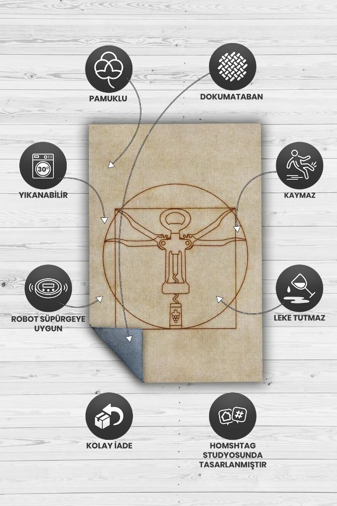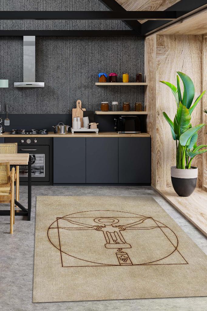 Homshtag Tirbuşon Bej Kahve Renkli Halı Modern Parti Temalı Halı Tasarım Dokuma Hediyelik Halı