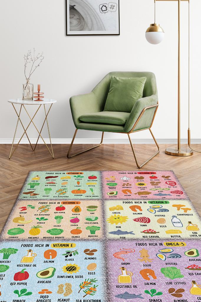 Homshtag Vitaminler Çok Renkli Diyetisyen Halı Diyetisyen Ofisine Diyetisyen Temalı Hediye Halı