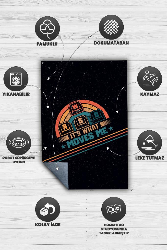 Homshtag WASD Siyah Oyuncu Halısı Gamerlara Özel Tasarım Halı Oyuncuya Hediye Halı Oyun Sever Halısı