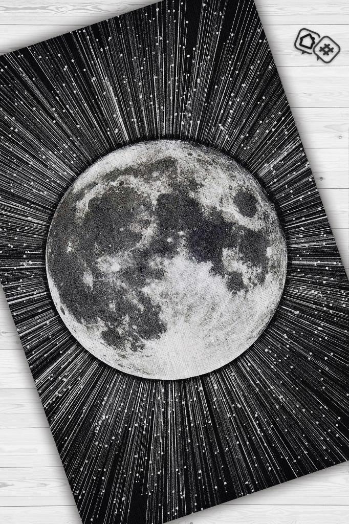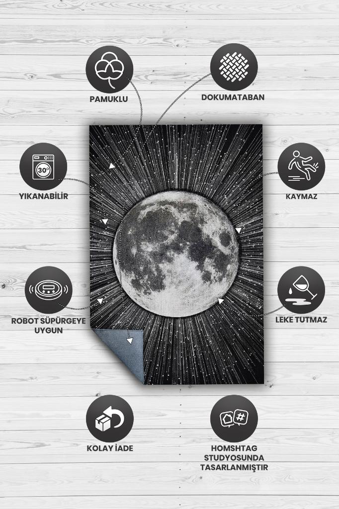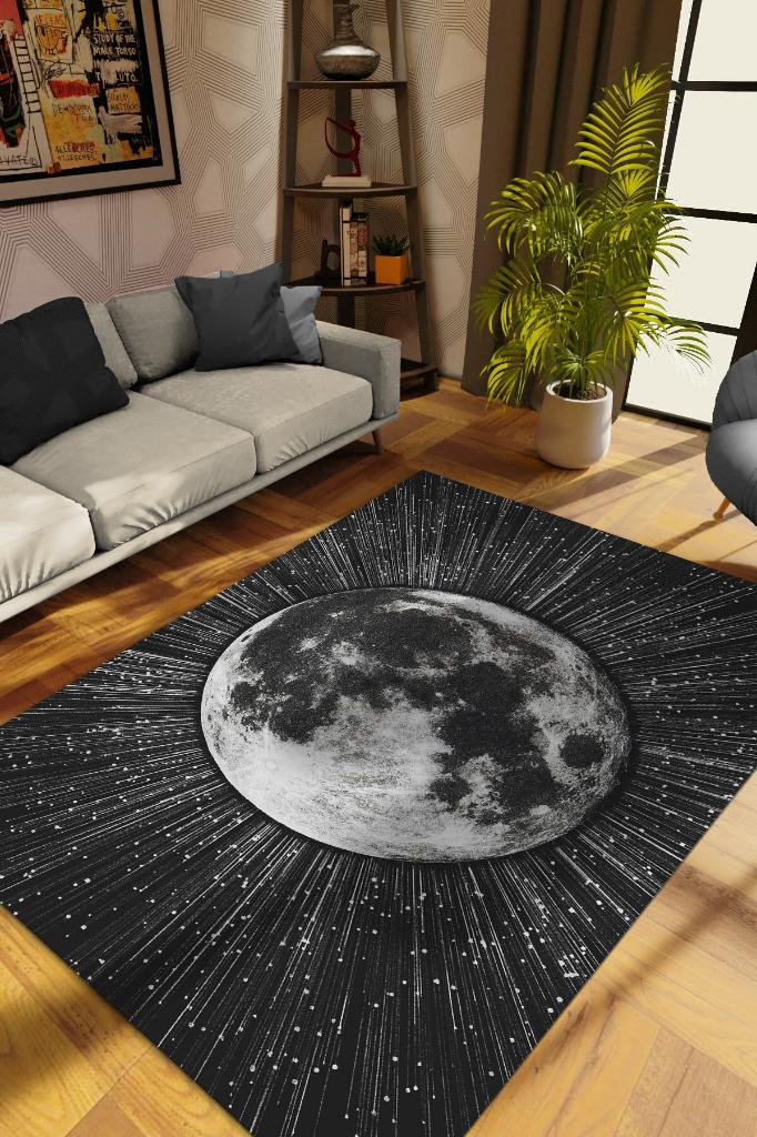 Homshtag Yansıtan Siyah Renkli Salon Halısı Gökyüzü Temalı Genç Odası Halısı Koyu Renkli Halı