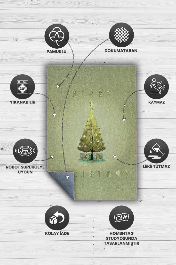 Homshtag Yeni Yıl Temalı Modern Halı Yeşil Renkli Yeni Yıl Parti Halısı Yılbaşı Hediyelik Halı