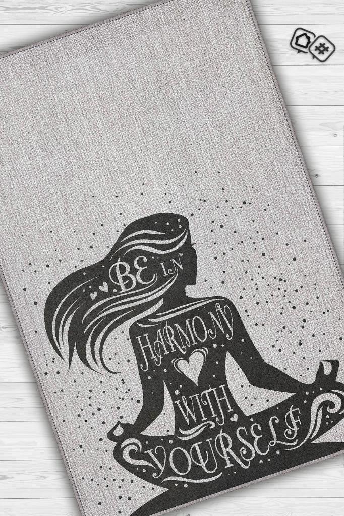 Homshtag Yogaya Güven Gri Renk Halı Dokuma Modern Meditasyon Sever Halısı Hediyelik Halı