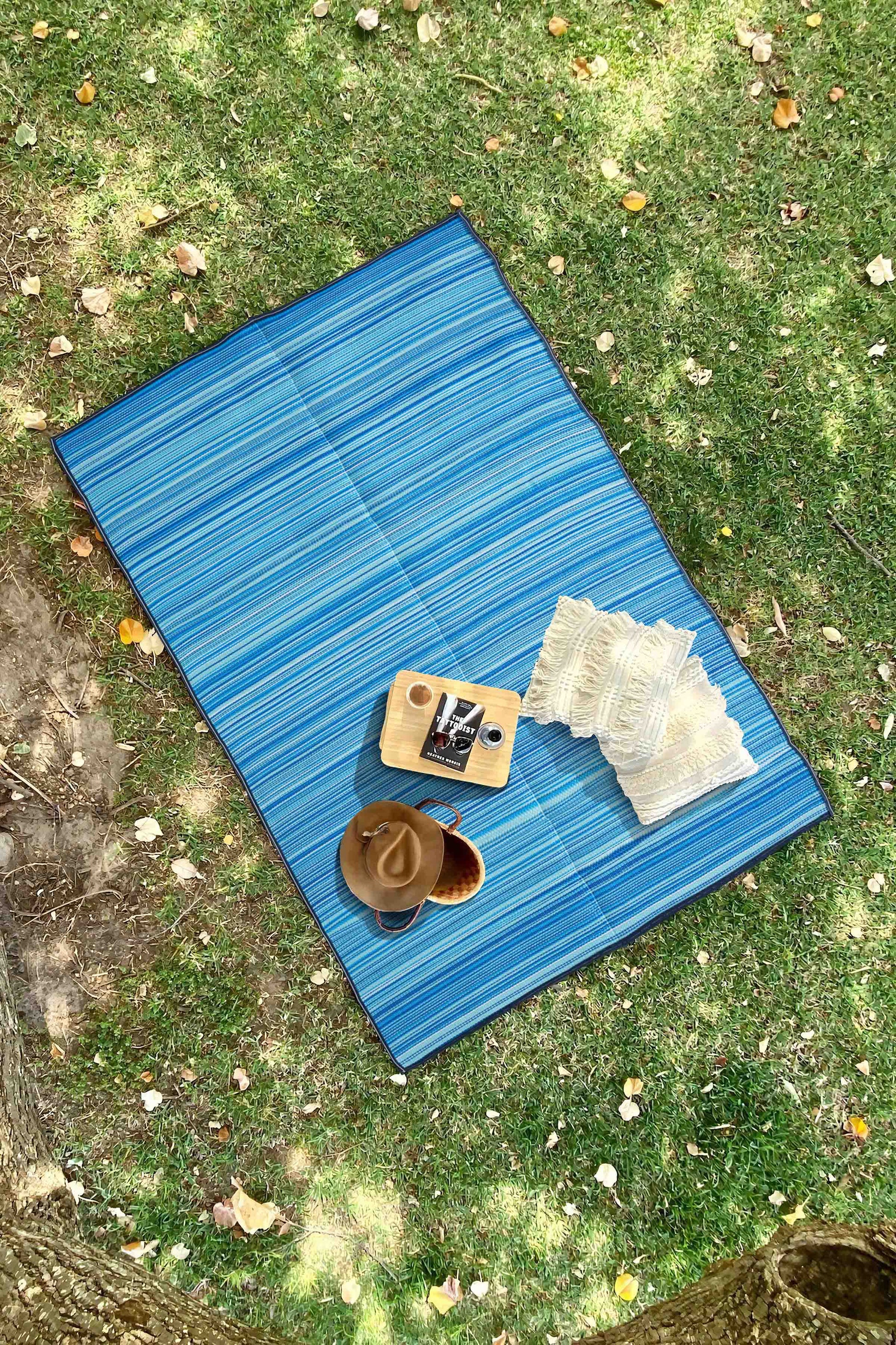 Katlanabilir Mavi Plaj Kamp Piknik Bahçe Balkon Teras Hasır Halı Mat Savan Kilim Karavan Halısı