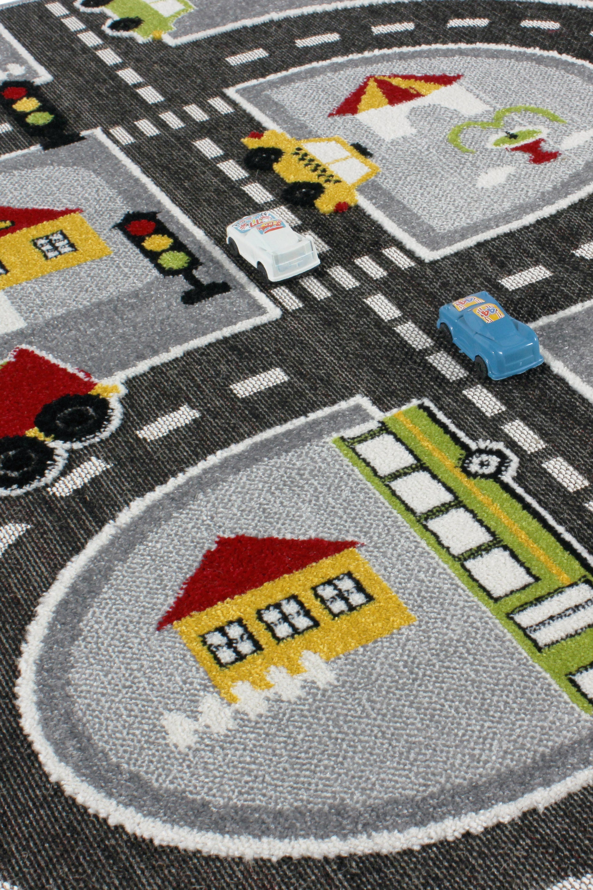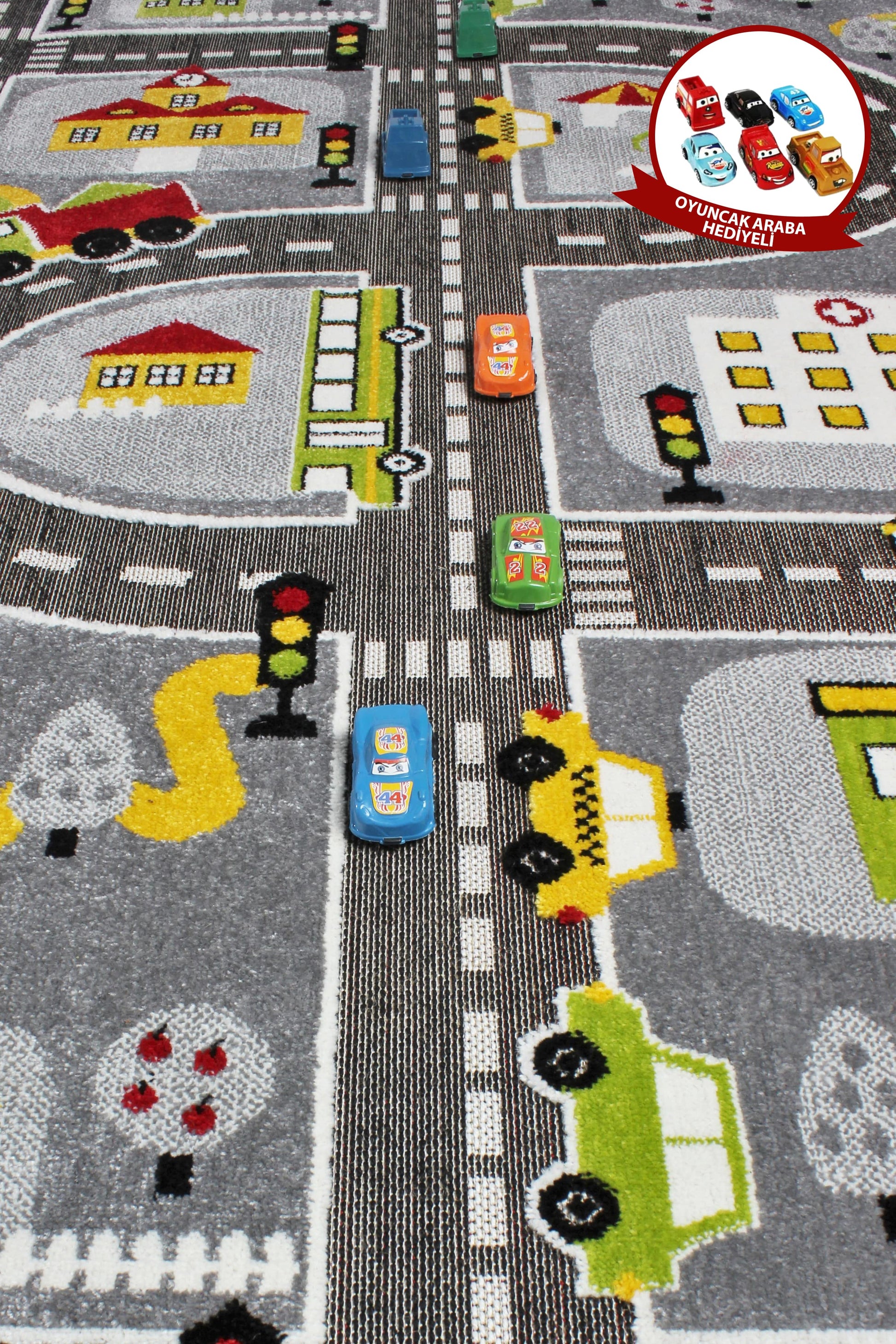 Konfor Anaokulu Kreş Oyun Halısı 3 Boyutlu Dokuma Gri Trafik Halı