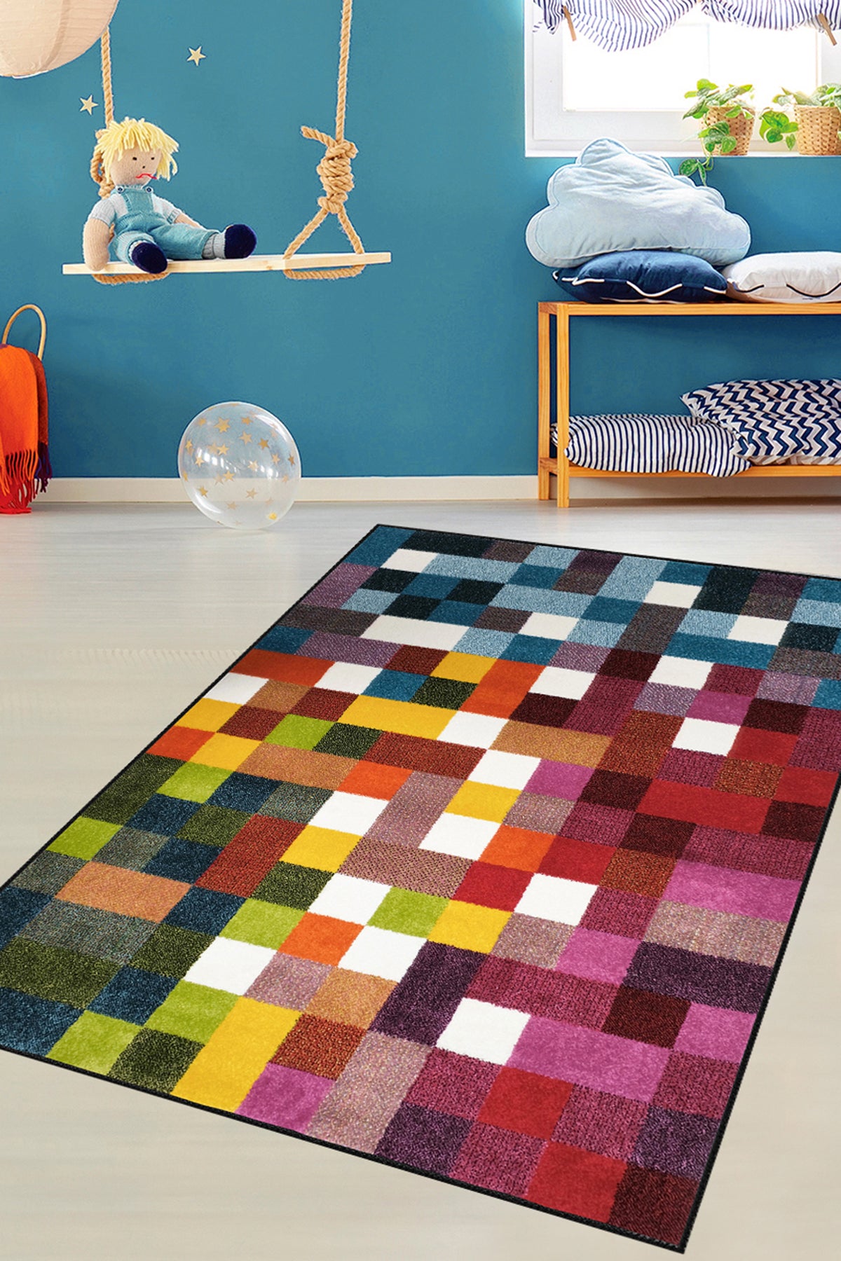 Konfor Anaokulu Kreş Oyun Halısı Renkli Dokuma Çocuk Halısı 6869