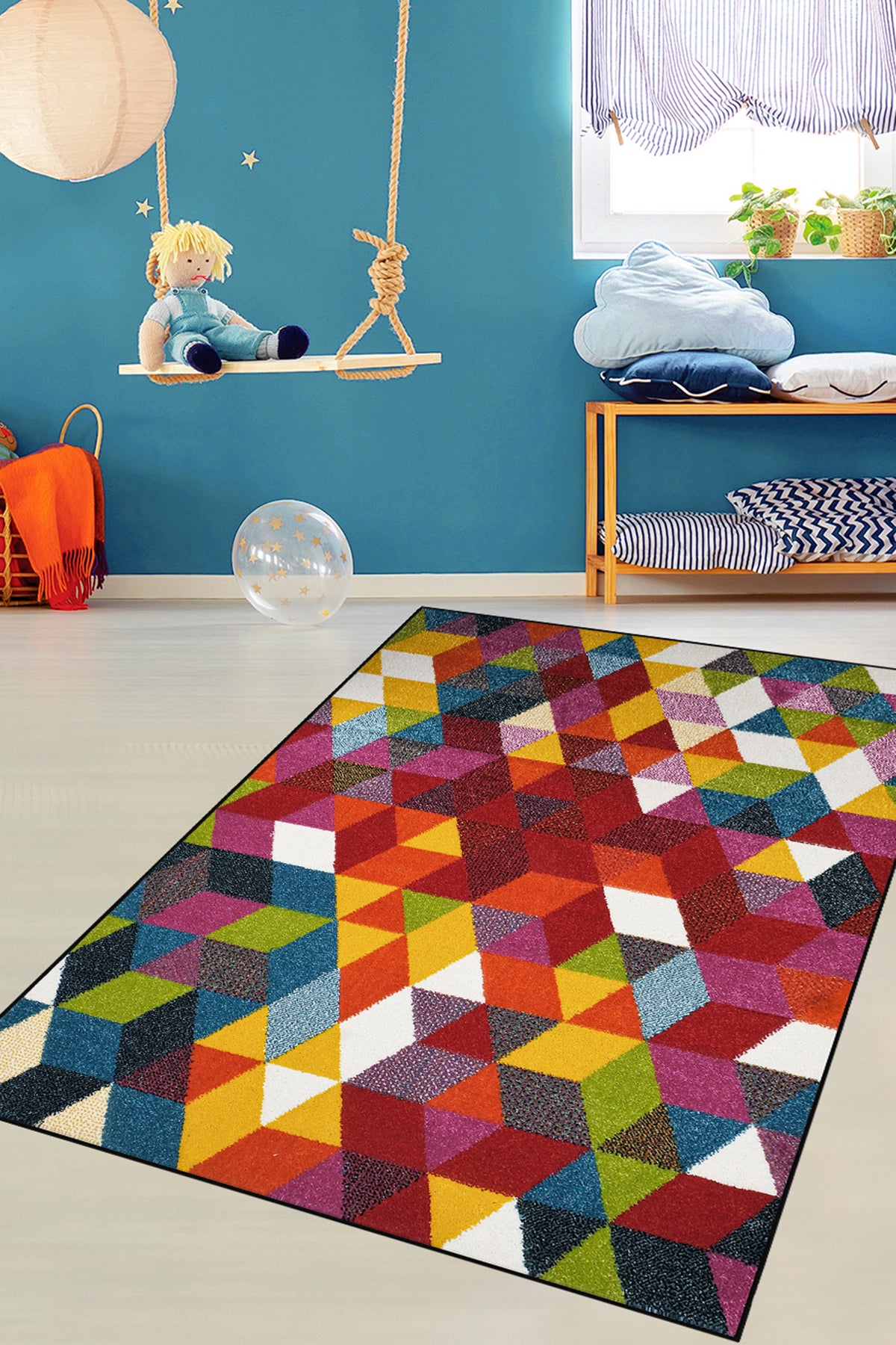 Konfor Anaokulu Kreş Oyun Halısı Renkli Dokuma Çocuk Halısı 6875