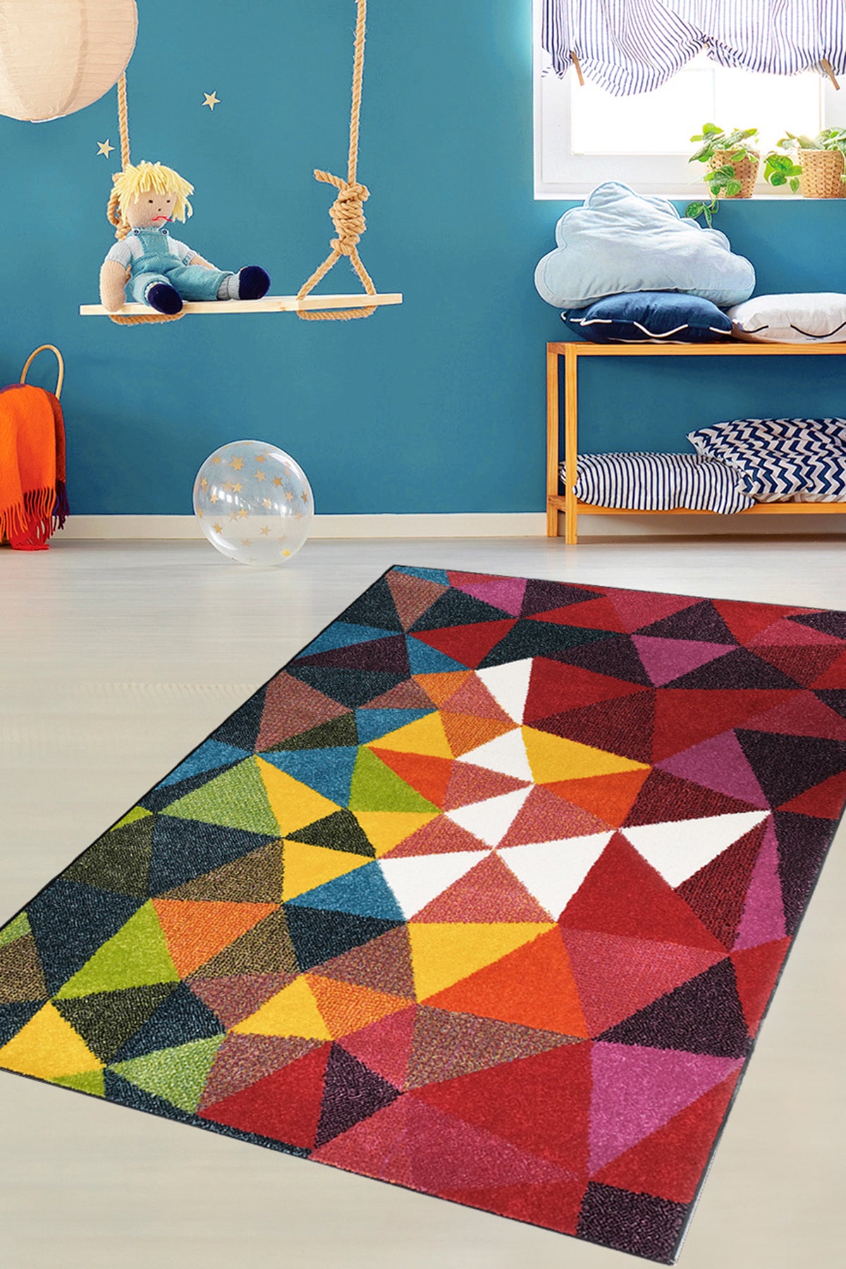 Konfor Anaokulu Kreş Oyun Halısı Renkli Dokuma Çocuk Halısı 6877
