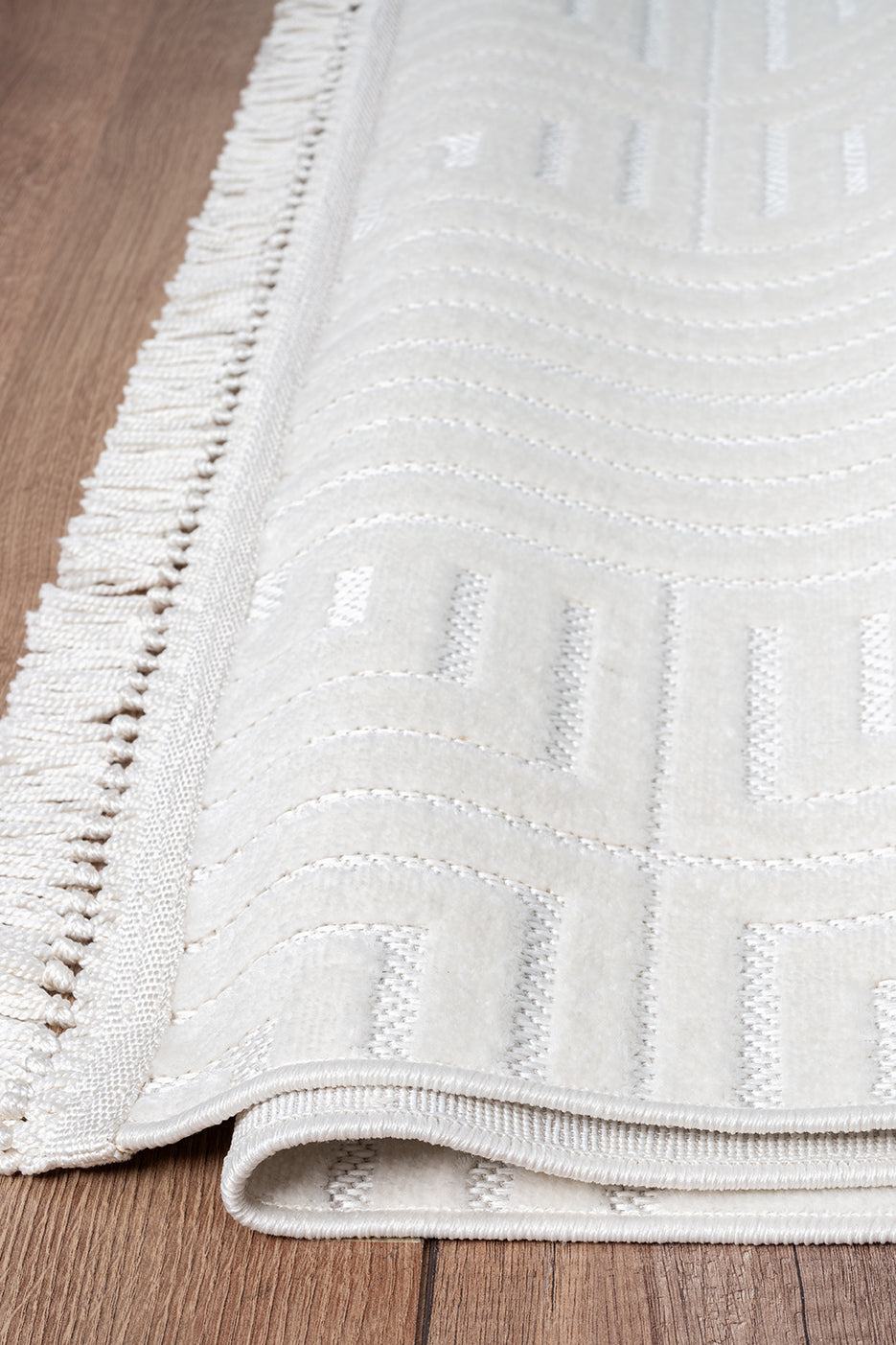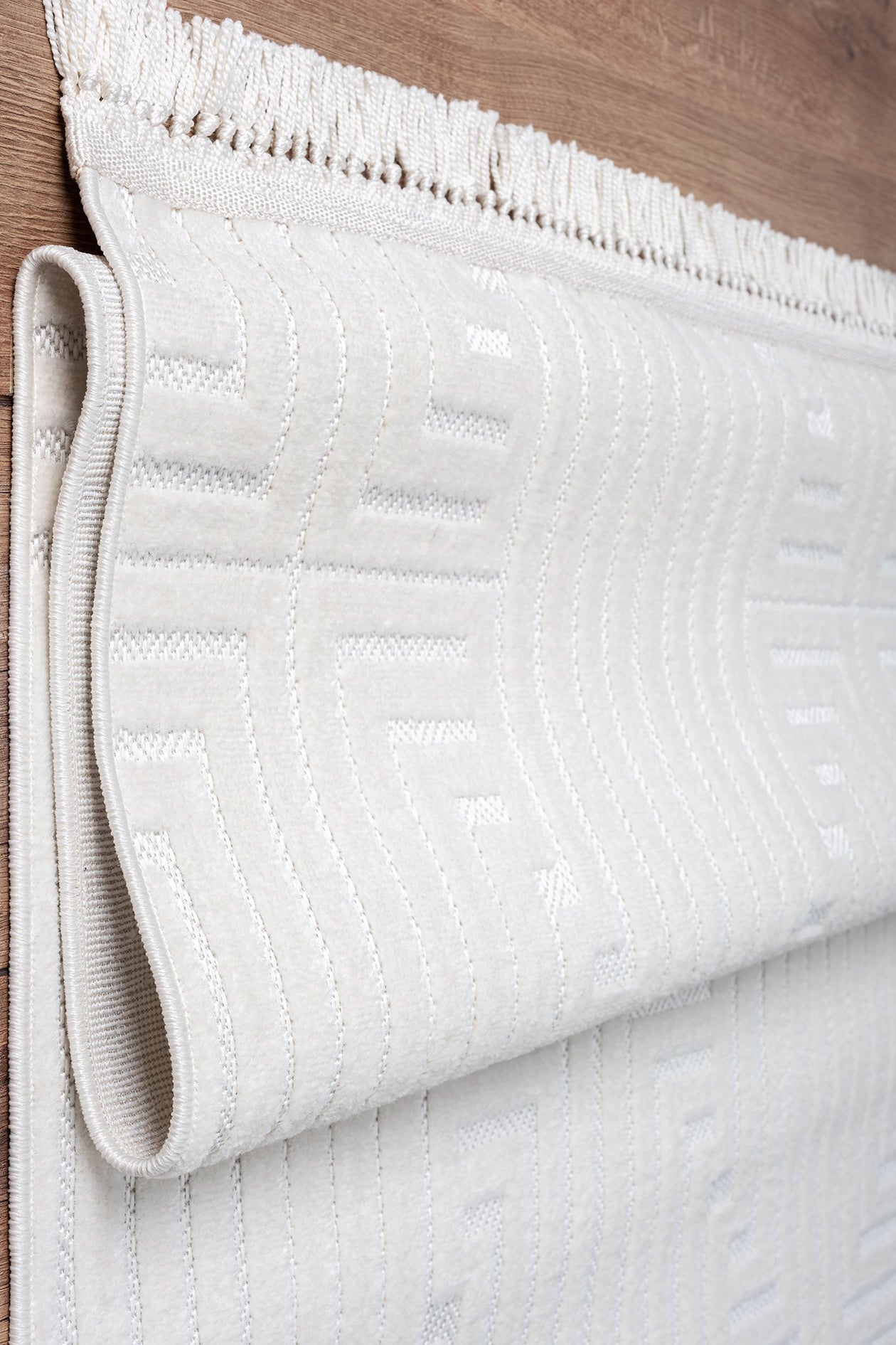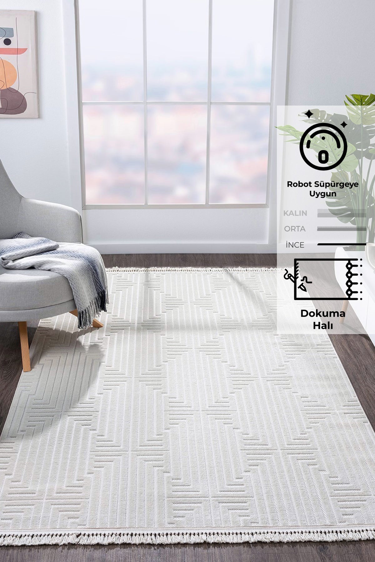 Konfor Sosa 9002 Beyaz Hasır Örme Tabanlı Modern Dokuma Halı