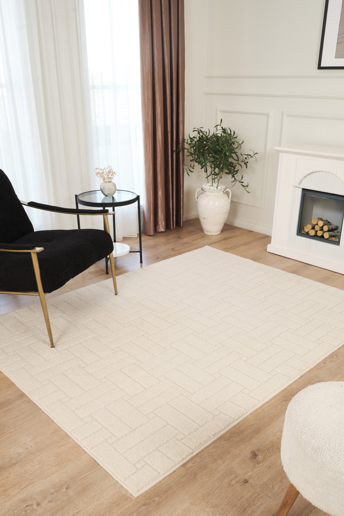 Krem Yumuşak Dokulu Uzun Ömürlü Lateks Kaymaz Taban Salon Oturma Odası Mutfak Koridor Halı RivonRN02