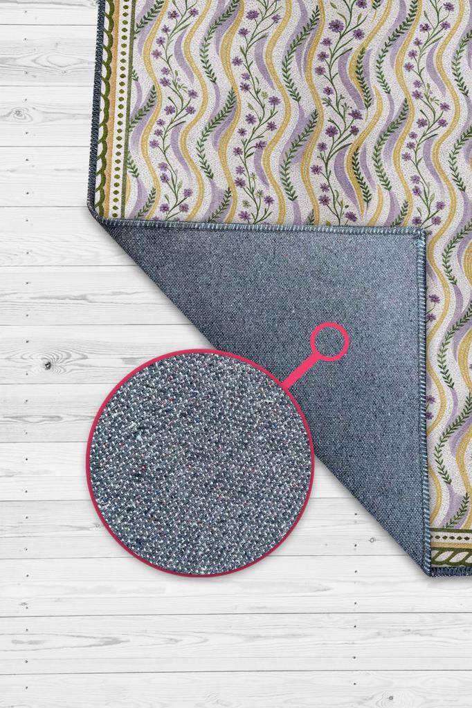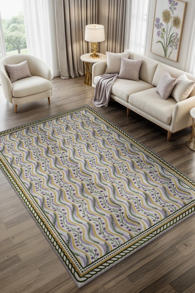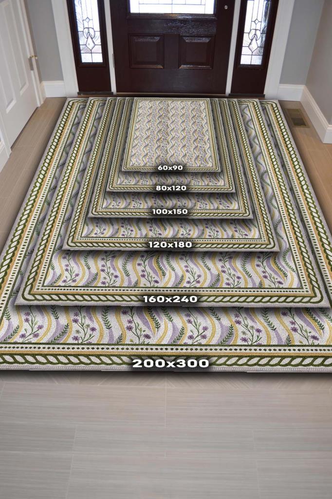 Leylak Yeşi Ve Sarı Renkli Oturma Odası Halısı, Doğal Ev Dekoru, Yıkanabilir Dokuma Pamuk Tabanlı Halı
