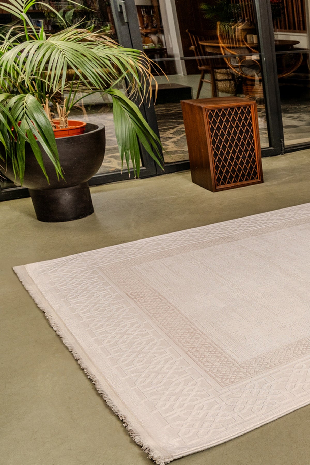 Mazzini 1481 Krem Uzun Ömürlü Yumuşak Dokulu Salon Mutfak Koridor Oturma Odası Yolluk Halı