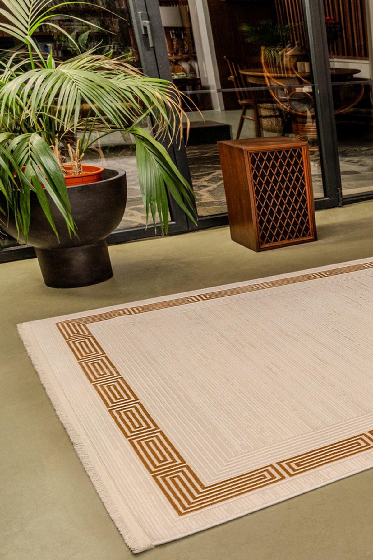 Mazzini 1482 Krem Uzun Ömürlü Yumuşak Dokulu Salon Mutfak Koridor Oturma Odası Yolluk Halı