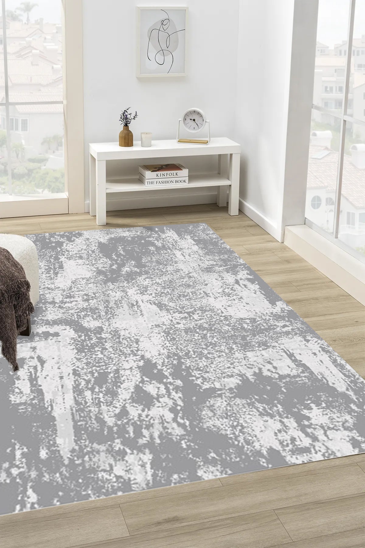 Modern MD011 Beyaz-Antrasit Uzun Ömürlü Yumuşak Dokulu Salon Mutfak Koridor Oturma Odası Yolluk Halı