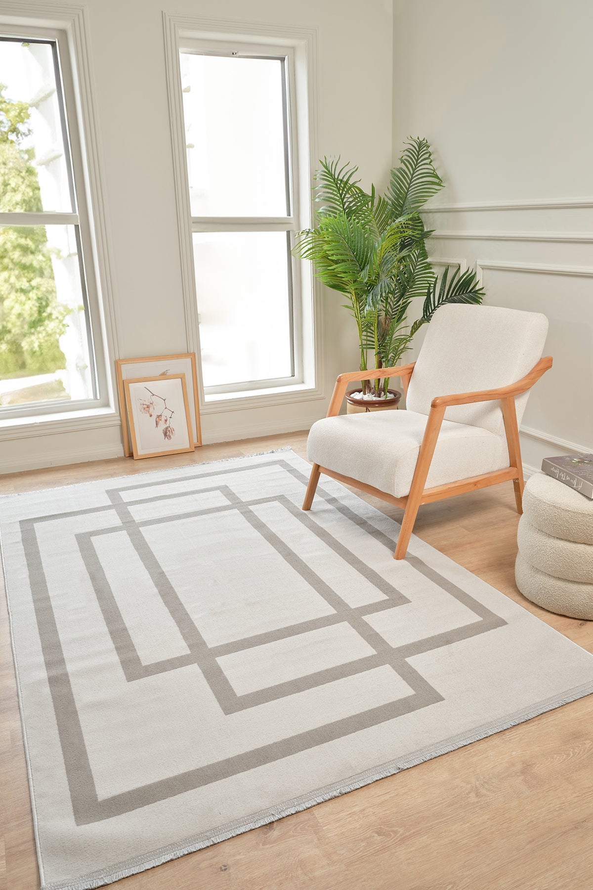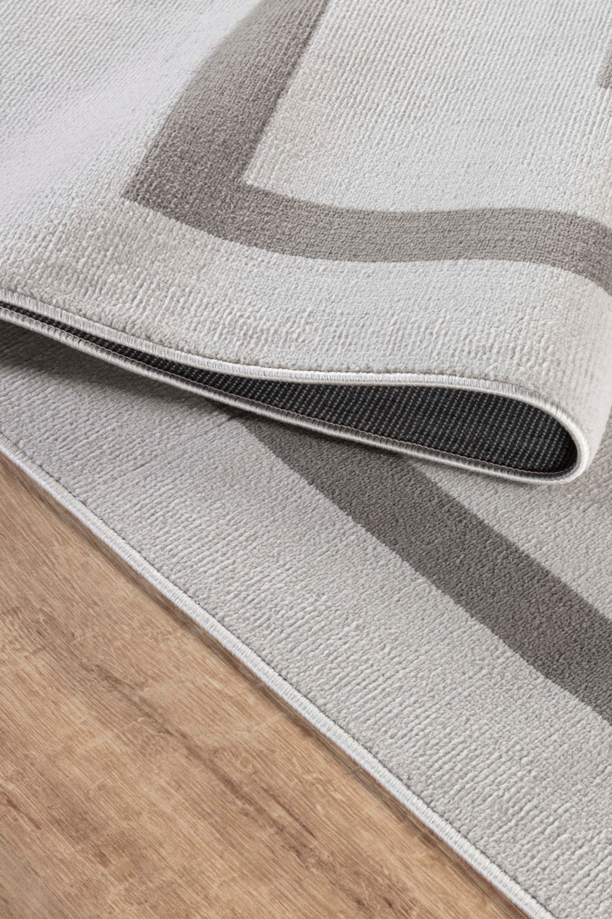 Moderno 3338 Gri Beyaz Çerçeve Desenli Dokuma Halı Salon Oturma Odası Mutfak Halısı Tozumaz Makine Halısı