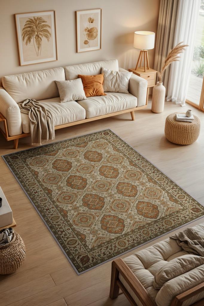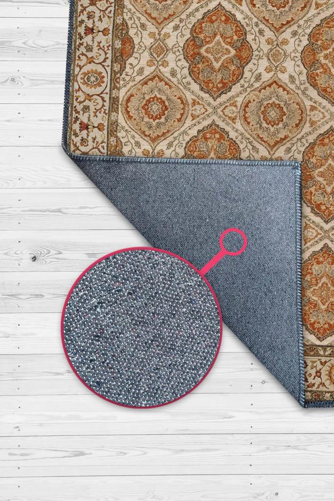 Osmanlı Türk Kültürü Desenli Klasik Oturma Odası Halısı, Kiremit Renli Halı, Makinede Yıkanabilir Madalyon Halı