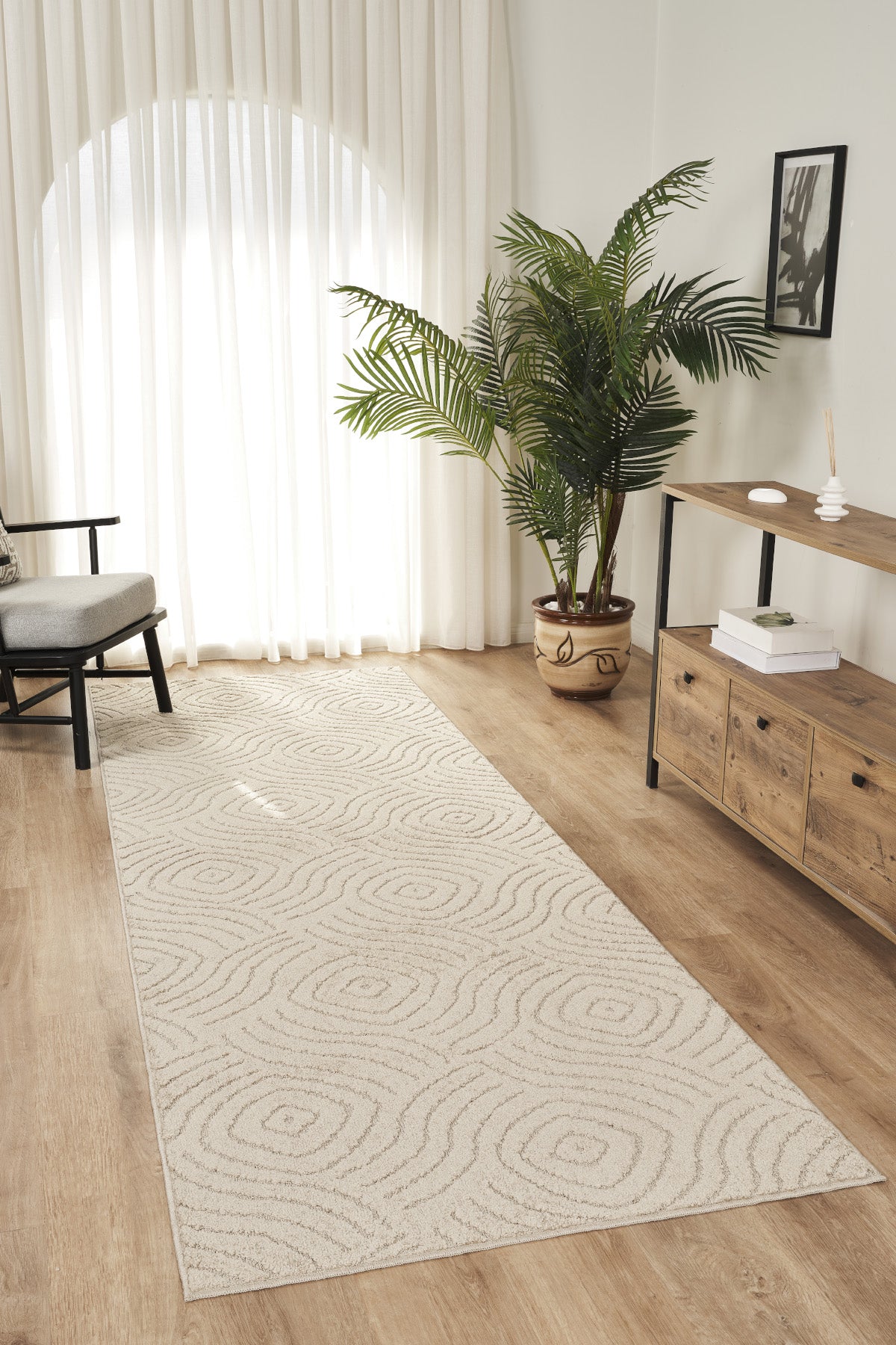 Rivon RN06 Bej Yumuşak Dokulu Kaymaz Taban Salon Mutfak Koridor Oturma Odası Yolluk Halı