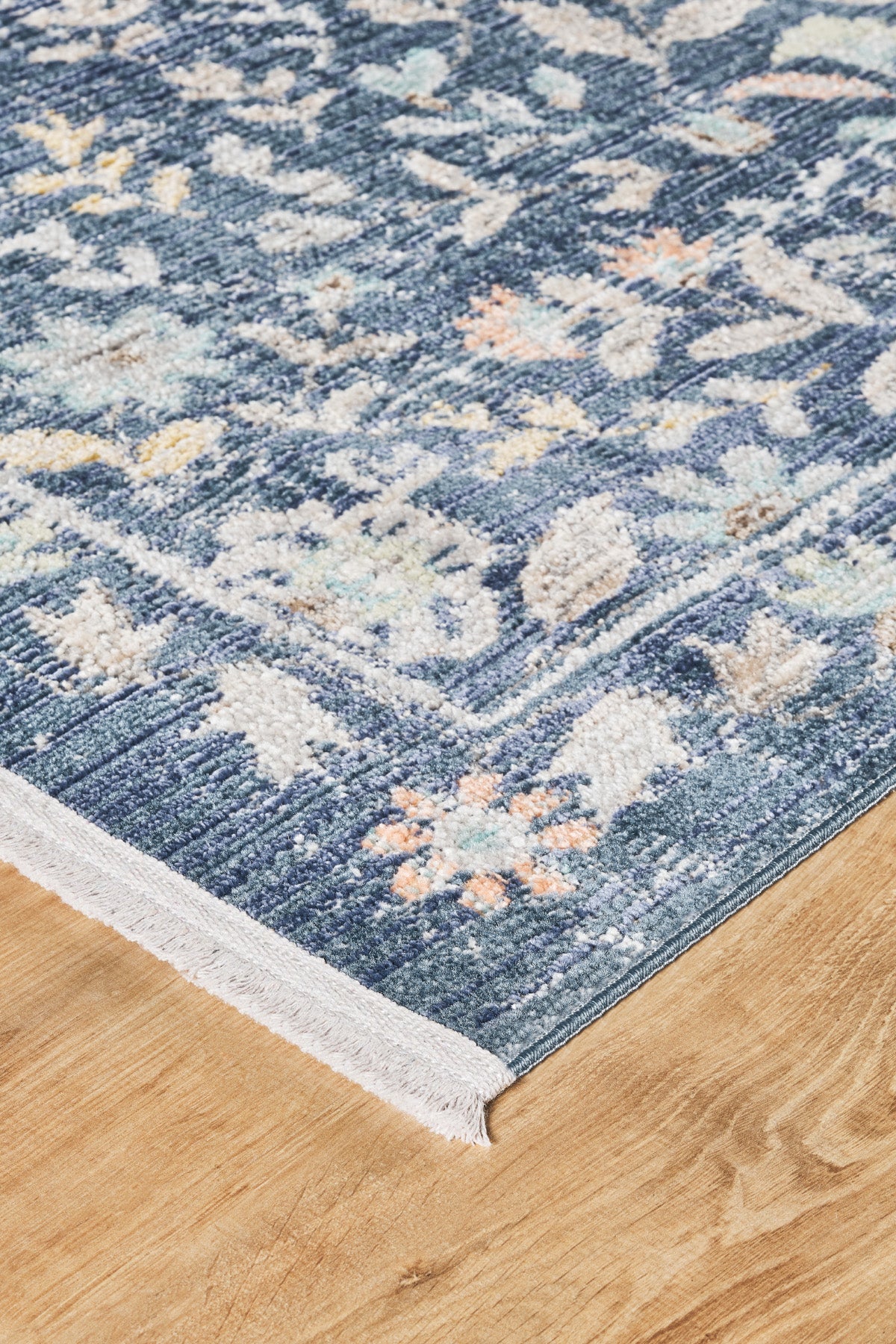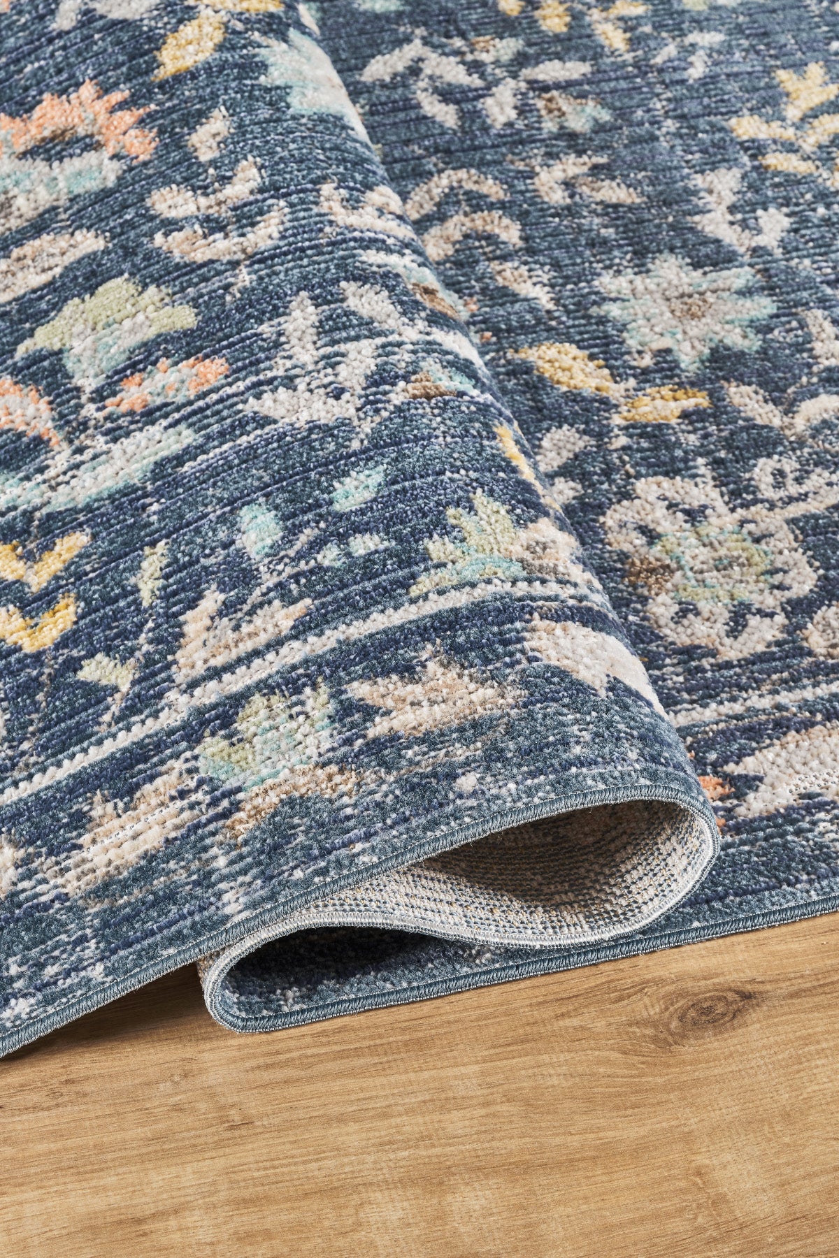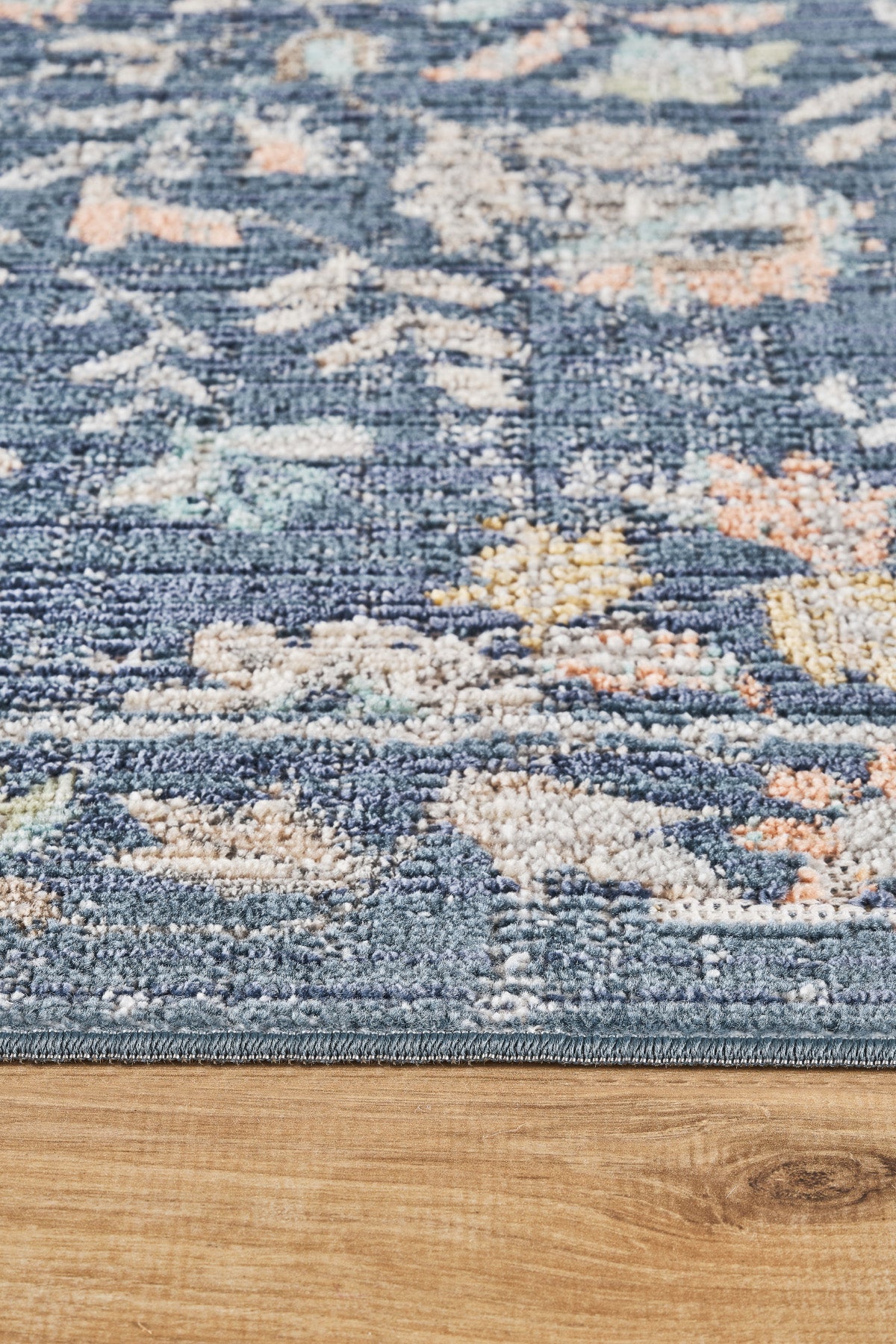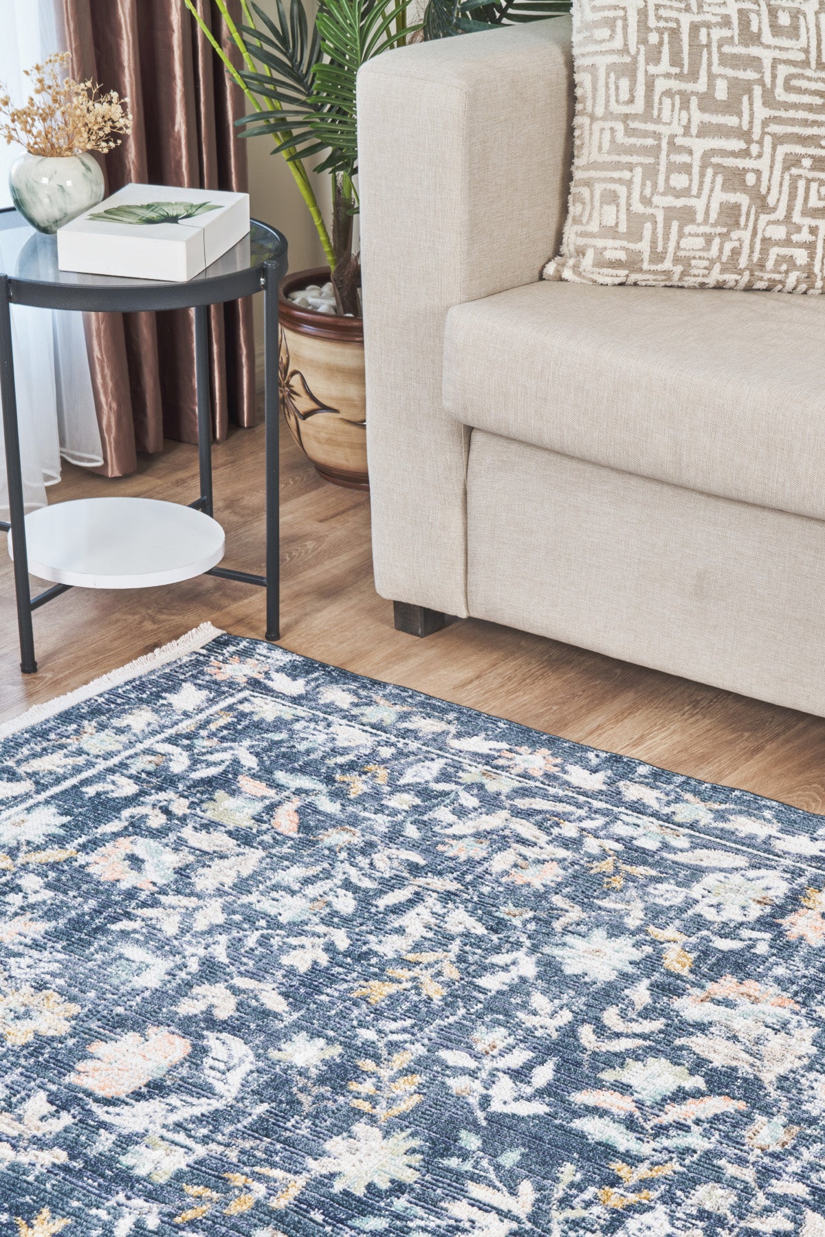 Rustik 2224 Klasik Vintage Salon Mavi Country Mutfak Halısı Tozumaz Yumuşak Makine Halısı