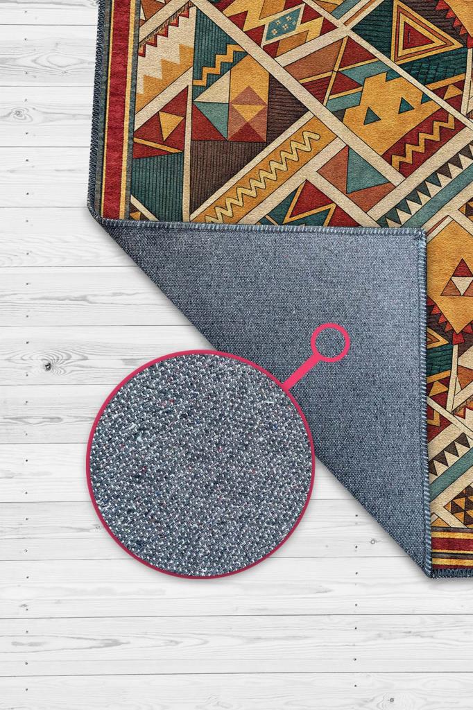 Rustik Halı, Çok Renkli Halı, Geometrik Halı, Üçgen Desenli Oturma Odası Halısı, Yıkanabilir Halı