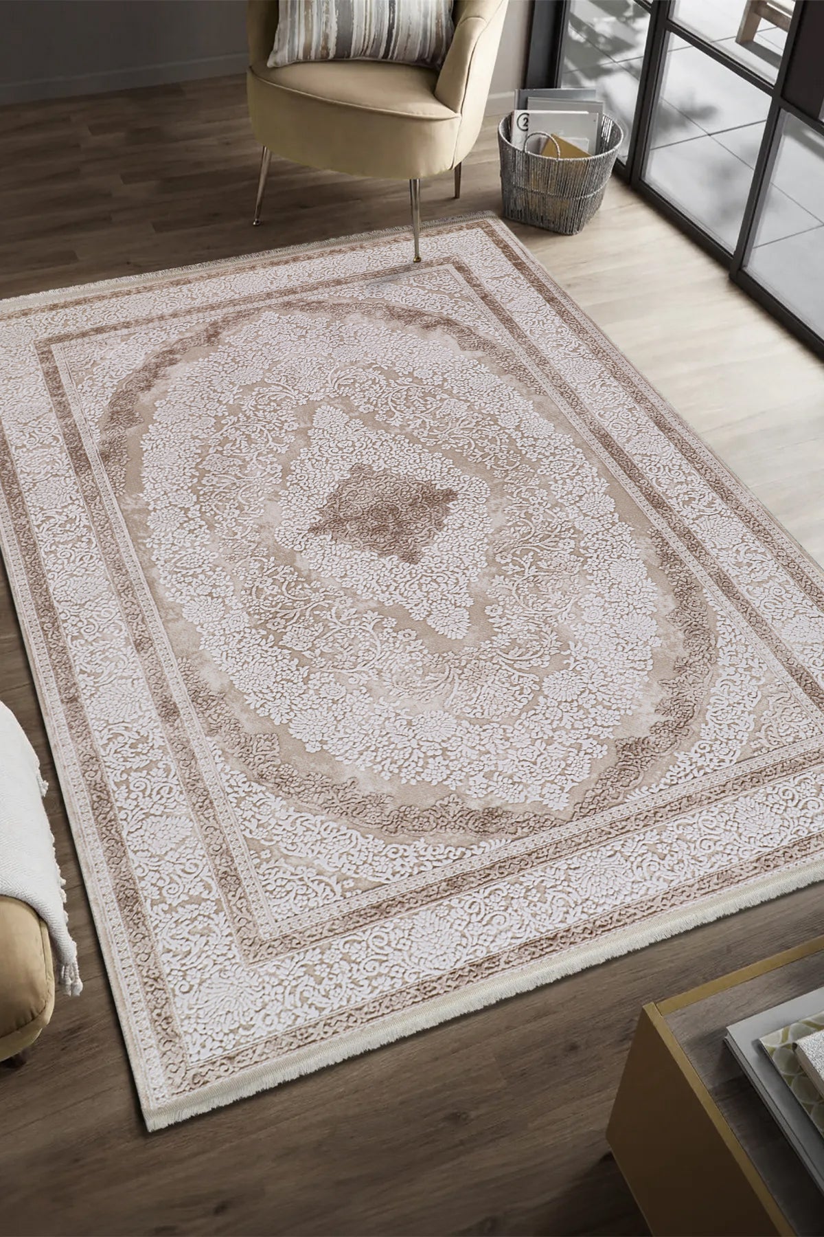 Serenat SE001 Krem-Kahve Uzun Ömürlü Yumuşak Dokulu Salon Mutfak Koridor Oturma Odası Yolluk Halı