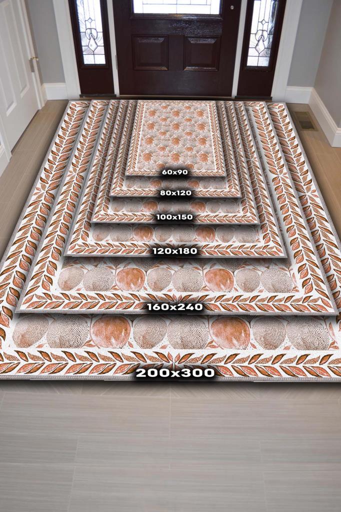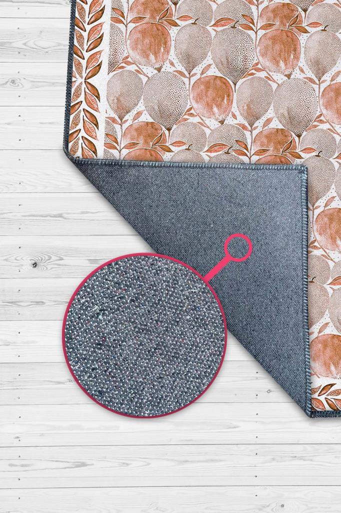 Terrakota Bitki Desenli Halı, Suluboya Efektli Turuncu Halı, Soyut Meyve Desenli Yıkanabilir Halı