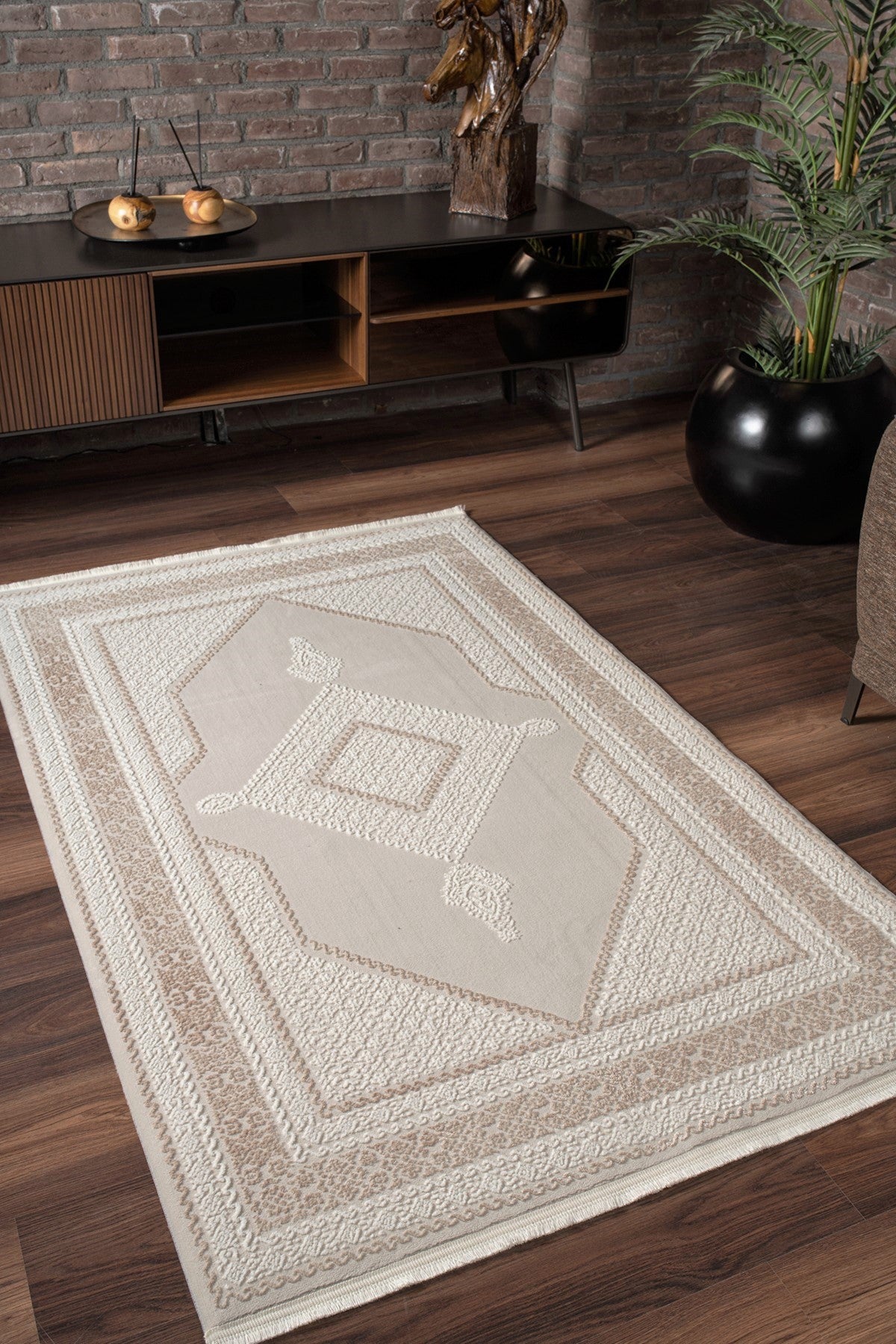 Vavien 1377 Bej Yumuşak Dokulu Salon Mutfak Koridor Oturma Odası Yolluk Halı Makine Halısı