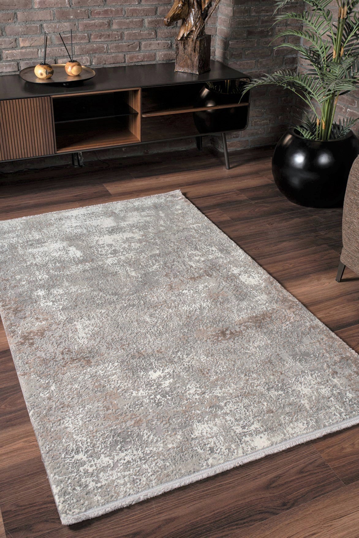 Vavien 1383 Gri Yumuşak Dokulu Salon Mutfak Koridor Oturma Odası Yolluk Halı Makine Halısı
