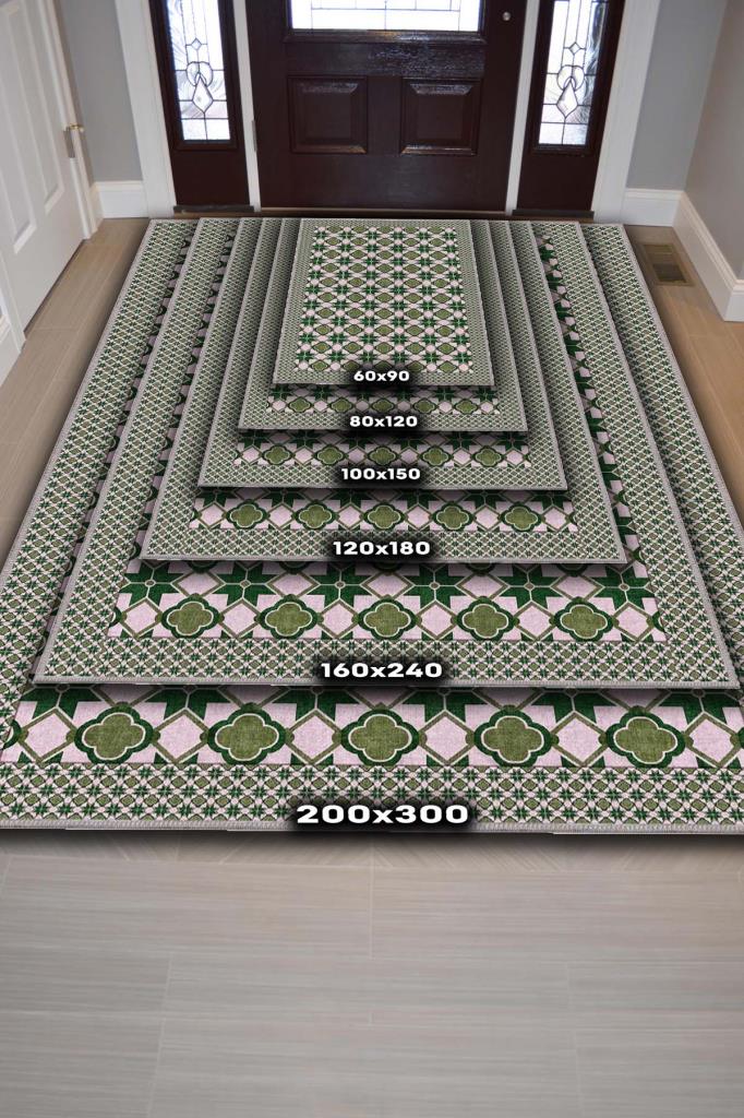 Zümrüt Geometrik Halı, Makinede Yıkanabilir Ritmik Desenli Halı, Oturma Odası Halısı